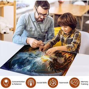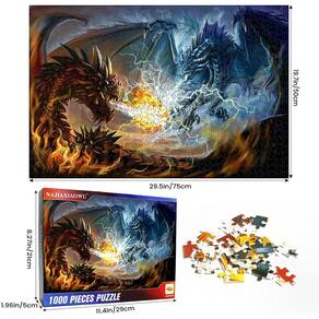 PRODUCTO INTERNACIONAL. Que tal mergulhar em um mundo de fantasia com este incrível quebra-cabeça de 1000 peças? Com os dragões de fogo e elétrico em uma incrível batalha, este jogo de quebra-cabeça divertido é perfeito para horas de atividade em família durante o inverno! Mais que um simples brinquedo, este quebra-cabeça para adultos promove a concentração, paciência e