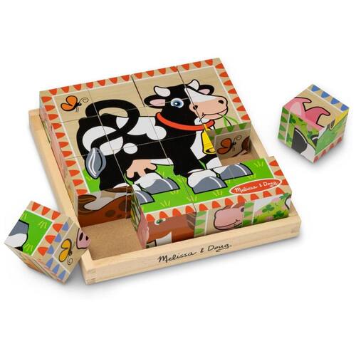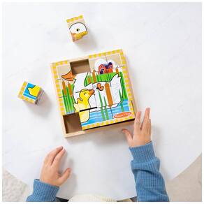Este quebra cabeça de cubo de madeira de 16 peças é um brinquedo versátil e divertido para crianças a partir de 3 anos. Ele pode ser montado de várias maneiras para criar 6 cenas diferentes com 6 animais de fazenda amigáveis vaca, ovelha, porco, galinha, patos e cavalo. Os cubos sólidos podem ser girados na bandeja de madeira incluída para completar as imagens coloridas, e o design da borda fornece uma dica útil.