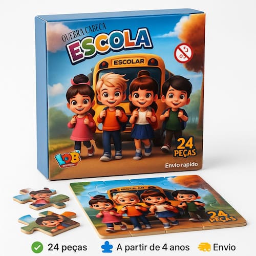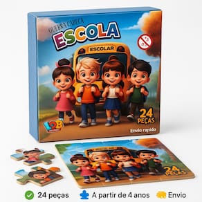 O Quebra-Cabeça "Escola" é ideal para estimular a coordenação motora, a percepção visual e o raciocínio lógico das crianças. Com 24 peças grandes e coloridas, ele é perfeito para mãos pequenas e seguro para crianças a partir de 4 anos.