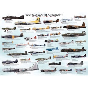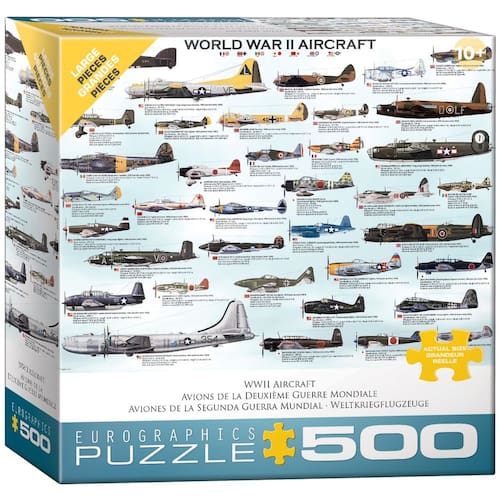 Quebra-cabeça de aeronaves da Segunda Guerra Mundial, 500 peças - Quebra-cabeça de 500 peças (caixa pequena) - Tamanho da caixa: 8" x 8" x 2,37" - Tamanho do quebra-cabeça acabado: 19,25" x 26,5” - Fabricado com quadro azul da mais alta qualidade - Fabricado nos EUA - Fabricado nos EUA usando um quadro azul da mais alta qualidade - Peças de quebra-cabeça fortes de alta qualidade e fáceis de encaixar que não quebram - Feito de tabuleiro atóxico com tinta vegetal - A montagem de quebra-cabeças melhora habilidades motoras finas e habilidades de reconhecimento de imagem - Promove o jogo cooperativo e independente