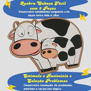 Quebra cabeça família vaca 2 peças madeira Quebra cabeça família vaca