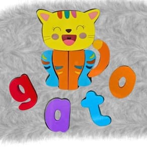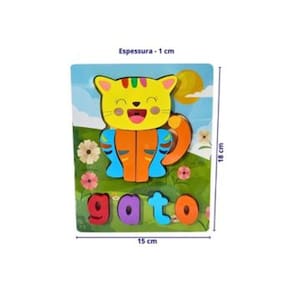 Conheça o Quebra-Cabeça de Encaixe Figura e Palavra Gato, um brinquedo educativo em madeira resistente e colorida, com 11 peças, que une aprendizado e diversão em uma única atividade. O tabuleiro ilustrado mede 15 x 18 x 1 cm e acompanha 10 peças coloridas para encaixar, formando não apenas a figura de um lindo gato, mas também a palavra “gato”, estimulando o reconhecimento de letras e a associação entre imagem e escrita. Ideal para crianças a partir de 3 anos, esse brinquedo educativo auxilia no desenvolvimento da coordenação motora fina, memória visual, atenção, raciocínio lógico e alfabetização inicial. O encaixe das peças promove a noção de forma e espaço, enquanto a palavra ajuda na familiarização com as letras, tornando o aprendizado lúdico e prazeroso. O Quebra-Cabeça Figura e Palavra Gato em madeira é uma excelente opção de presente, perfeito para uso em casa, na escola ou em atividades pedagógicas. Além disso, por ser compacto e leve, é ideal para levar em passeios ou viagens. Indicado para crianças a partir de 3 anos (conforme fabricante). Conteúdo da embalagem: 1 tabuleiro com 10 peças para encaixar Medidas do tabuleiro: 15cm x 18cm x 1cm (CxLxA) Composição: Madeira