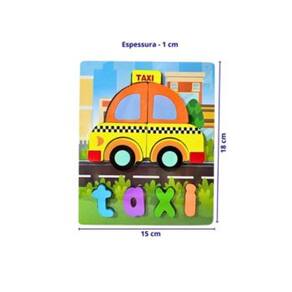 Conheça o Quebra-Cabeça de Encaixe Figura e Palavra Taxi, um brinquedo educativo em madeira resistente e colorida, com 12 peças, que une aprendizado e diversão em uma única atividade. O tabuleiro ilustrado mede 15 x 18 x 1 cm e acompanha 11 peças coloridas para encaixar, formando não apenas a figura de um lindo taxi, mas também a palavra “taxi”, estimulando o reconhecimento de letras e a associação entre imagem e escrita. Ideal para crianças a partir de 3 anos, esse brinquedo educativo auxilia no desenvolvimento da coordenação motora fina, memória visual, atenção, raciocínio lógico e alfabetização inicial. O encaixe das peças promove a noção de forma e espaço, enquanto a palavra ajuda na familiarização com as letras, tornando o aprendizado lúdico e prazeroso. O Quebra-Cabeça Figura e Palavra Taxi em madeira é uma excelente opção de presente, perfeito para uso em casa, na escola ou em atividades pedagógicas. Além disso, por ser compacto e leve, é ideal para levar em passeios ou viagens. Indicado para crianças a partir de 3 anos (conforme fabricante). Conteúdo da embalagem: 1 tabuleiro com 11 peças para encaixar Medidas do tabuleiro: 15cm x 18cm x 1cm (CxLxA) Composição: Madeira