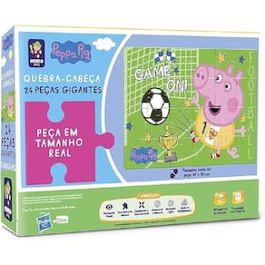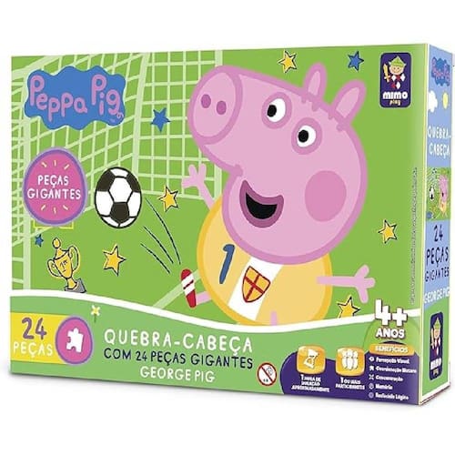 O Quebra-Cabeça Gigante George Jogando Futebol da Mimo é o entretenimento ideal para os pequenos fãs da família de porquinhos mais amada da televisão. Com 24 peças grandes e resistentes, este quebra-cabeça é perfeito para estimular o desenvolvimento cognitivo, coordenação motora e concentração das crianças. Além disso, a cena de George jogando futebol garante momentos de diversão e aprendizado. Idade recomendada: A partir de 4 anos. Selo Inmetro: 008653/2022.