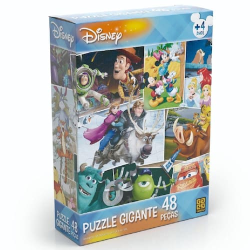 Quebra-Cabeça Gigante Disney 48 Peças - Grow Não deixe de brincar e se divertir com este quebra-cabeça! São 48 peças gigantes, para você encaixar uma a uma até formar uma linda e gigante imagem dos personagens da Disney. Mais que um passatempo divertido, os quebra-cabeças desenvolvem o raciocínio, relaxam e se transformam num autêntico hobby. Selo Inmetro: CE-BRI/ICEPEX-N 01264-25