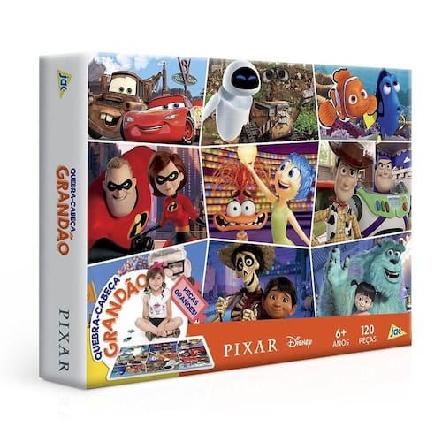 Os personagens da Pixar se juntaram em uma superaventura cheia de cor e imaginação! Com 120 peças grandes, este quebra-cabeça é perfeito para crianças a partir de 6 anos. Um passatempo divertido que estimula a criatividade, a coordenação motora e o raciocínio lógico! O Quebra-Cabeça Grandão 120 Peças Pixar, fabricado pela renomada marca Toyster, é um quebra-cabeça cartonado que reúne alguns dos personagens mais queridos do estúdio, elaborado com papel e papel cartão rígido e projetado para estimular a criatividade, coordenação motora e raciocínio lógico.
