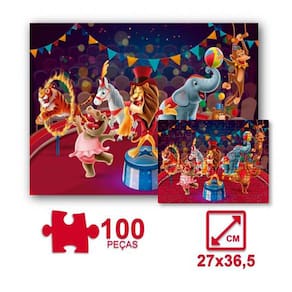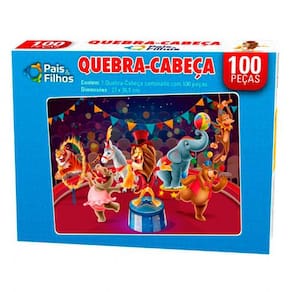 Quebra-Cabeça Infantil - 100 Peças - Circo - Pais e Filhos: respeitável público, o Circo chegou à cidade para fazer a alegria das crianças. O Quebra Cabeça Circo da Pais e Filhos traz para a diversão das crianças toda a alegria de um circo em um quebra-cabeça infantil. Detalhes • Composto por 100 peças produzidas em papel cartão • Este Quebra Cabeça tema circo é estampado em alta definição para valorizar cada detalhe desse lindo desenho. • Foi produzido especialmente para a diversão e desenvolvimento das crianças. • Os pequenos sentirão toda a emoção e desafio de montar um quebra cabeça de circo com leão, elefantinho e outros animais do circo Informações: • Produto: Quebra-Cabeça Circo 100 peças • Marca: Pais e Filhos • Coleção: Circo • Tipo: Quebra-Cabeça Infantil • Categoria: Quebra-Cabeça e Puzzle • Dimensões: 27 x 36.5 cm • Conteúdo: 1 quebra-cabeça cartonado com 100 Peças • Recomendação: para crianças a partir de 04 anos de idade Especificações: • Referência: 2873 • Código de Barras: 7896647028735 • Embalagem (C x A x L): 24 x 18 x 06 cm • Embalagem (Peso): 0.190 kg • Material / Composição: papel e papel cartão • Registro: CE-BRI/ICEPEX-l 01883-25 • Certificado: Órgãos Autorizados - OCP´S (Organismos de Certificação de Produtos) Benefícios de montar quebra-cabeça: • Eleva a autoestima • Exercita a memória • Estimula o raciocínio • Exercita o imaginário • Desenvolve a criatividade • Desenvolve percepção visual • Desperta a atenção e curiosidade • Desenvolvimento neuropsicológico • Estimula habilidades motoras básicas • Incentiva a comunicação e linguagem • Desenvolve aspectos emocionais e afetivo • Estimula o reconhecimento de formas e cores Aviso: • As imagens são meramente ilustrativas • Os pesos, tamanhos e medidas são aproximados • As cores e estampas dos produtos podem ter variações • As informações são de responsabilidade do fabricante ou fornecedor Ean: 7896647028735