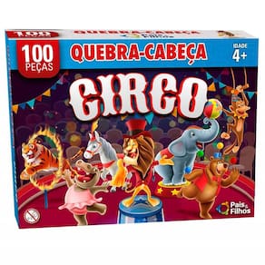 Quebra-Cabeça Infantil - 100 Peças - Circo - Pais e Filhos: respeitável público, o Circo chegou à cidade para fazer a alegria das crianças. O Quebra Cabeça Circo da Pais e Filhos traz para a diversão das crianças toda a alegria de um circo em um quebra-cabeça infantil. Detalhes • Composto por 100 peças produzidas em papel cartão • Este Quebra Cabeça tema circo é estampado em alta definição para valorizar cada detalhe desse lindo desenho. • Foi produzido especialmente para a diversão e desenvolvimento das crianças. • Os pequenos sentirão toda a emoção e desafio de montar um quebra cabeça de circo com leão, elefantinho e outros animais do circo Informações: • Produto: Quebra-Cabeça Circo 100 peças • Marca: Pais e Filhos • Coleção: Circo • Tipo: Quebra-Cabeça Infantil • Categoria: Quebra-Cabeça e Puzzle • Dimensões: 27 x 36.5 cm • Conteúdo: 1 quebra-cabeça cartonado com 100 Peças • Recomendação: para crianças a partir de 04 anos de idade Especificações: • Referência: 2873 • Código de Barras: 7896647028735 • Embalagem (C x A x L): 24 x 18 x 06 cm • Embalagem (Peso): 0.190 kg • Material / Composição: papel e papel cartão • Registro: CE-BRI/ICEPEX-l 01883-25 • Certificado: Órgãos Autorizados - OCP´S (Organismos de Certificação de Produtos) Benefícios de montar quebra-cabeça: • Eleva a autoestima • Exercita a memória • Estimula o raciocínio • Exercita o imaginário • Desenvolve a criatividade • Desenvolve percepção visual • Desperta a atenção e curiosidade • Desenvolvimento neuropsicológico • Estimula habilidades motoras básicas • Incentiva a comunicação e linguagem • Desenvolve aspectos emocionais e afetivo • Estimula o reconhecimento de formas e cores Aviso: • As imagens são meramente ilustrativas • Os pesos, tamanhos e medidas são aproximados • As cores e estampas dos produtos podem ter variações • As informações são de responsabilidade do fabricante ou fornecedor Ean: 7896647028735