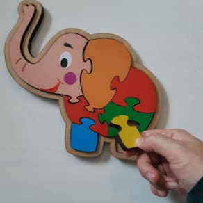 Um dos brinquedos educativos mais buscados pelas famílias são os quebra-cabeças Esse quebra-cabeça infantil é composto por 7 peças grandes e coloridas para formar um simpático elefante. Educando e ao mesmo tempo divertindo, jogos de quebra-cabeça infantil para montar auxiliam a criança a trabalhar noções de movimento, coordenação motora, raciocínio lógico e concentração. Além disso, brinquedos de animais atraem a atenção e os sorrisos de qualquer criança Garanta o Brinquedo Educativo Quebra-Cabeça Elefante clicando no botão Comprar. Aqui na laluka temos os melhores brinquedos para crianças de até 6 anos, brinquedos diferentes, criativos, lúdicos e muito divertidos Características e especificações: Marca: Maninho Modelo: Jogo Infantil Quebra-Cabeça Material: madeira Composição: 1 base de 20 x 18 x 1,2 cm e 7 peças de encaixe no tema elefante. Idade mínima recomendada: a partir dos 3 anos Certificação INMETRO CE-BRI/INNAC - 01612-001 NM 300/2002 Segurança do Brinquedo Ean: 7899702015510