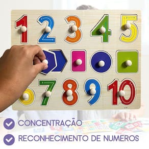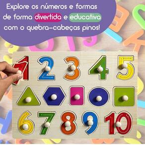 Quebra-cabeça Infantil Encaixe Divertido Pinos Numeros Formas O quebra-cabeça de pinos de encaixe números e formas geométricas é uma verdadeira porta de entrada para o universo do aprendizado divertido