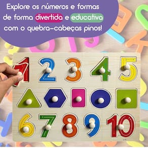 Quebra-cabeça Infantil Encaixe Divertido Pinos Numeros Formas O quebra-cabeça de pinos de encaixe números e formas geométricas é uma verdadeira porta de entrada para o universo do aprendizado divertido
