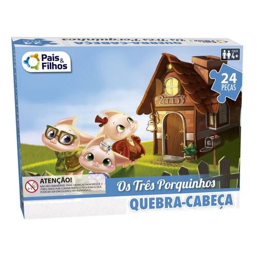 Quebra-cabeça educativo com ilustração temática dos Três Porquinhos, desenvolvido para auxiliar no estímulo ao raciocínio lógico, coordenação motora e memória das crianças. Com 24 peças confeccionadas em papel cartão resistente, é ideal para o público infantil a partir de 4 anos. Produto indicado para uso individual ou em grupo, promovendo aprendizado e interação.