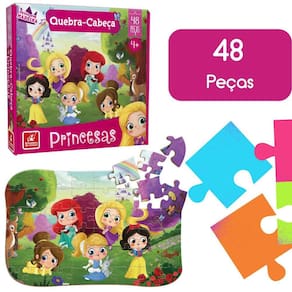 Quebra-cabeça Infantil Princesas 48 Peças Brinquedo Madeira no reino encantado, todos os dias são lindos. As princesas se divertem no bosque e animais caminham junto delas. Com esse lindo quebra-cabeça de 48 peças, você encaixa as peças uma a uma até formar uma linda e colorida imagem.
