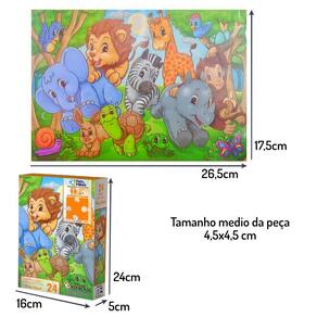 Quebra cabeça com linda e fofa paisagem do Zoo Safari Baby Animais contem 24 peças. Com um design inovador e cores vibrantes, este quebra cabeça proporciona a sensação de superação quando nossos pequenos conseguem montar. As cores podem até ajudar, mas o grande segredo está no desenho das peças. Eles vão adorar esse desafio!