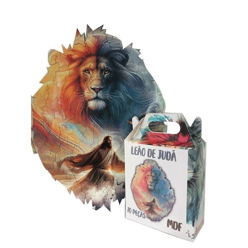 Quebra-cabeça Jesus Cristo e o Leão de Judá 70 peças em mdf Quebra-cabeça Jesus Cristo e o Leão de Judá 70 peças em mdf