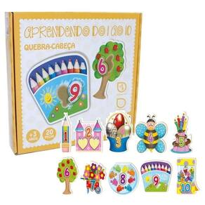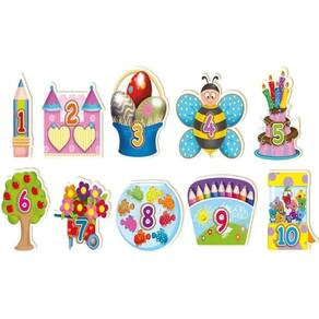 Esse quebra cabeça vai ajudar as crianças a contarem de um a dez. A representação do número é destacado da figura e criança precisa encaixar cada peça em seu lugar correto. Por associação vai perceber quantas unidades de objetos estão representadas na figura e então, irá encaixar o número. Por exemplo: No cestinho existem três ovos coloridos. Então, o número a ser encaixado é o três.