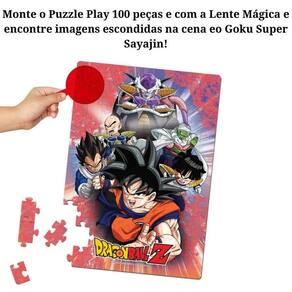 O Puzzle Play de 100 peças Dragon Ball Z Com a Lente Mágica é um quebra-cabeça emocionante e desafiador projetado para os fãs da famosa série de anime Dragon Ball Z. Este quebra-cabeça permite que os entusiastas da série mergulhem no mundo épico de Dragon Ball Z enquanto montam uma cena icônica usando 100 peças interconectadas e com a lente mágica e encontre imagens escondidas na cena e o Goku super sayajin.