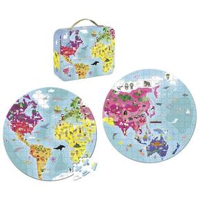 Quebra-Cabeça Mapa Mundi Dupla Face 208 Peças Madeira Janod