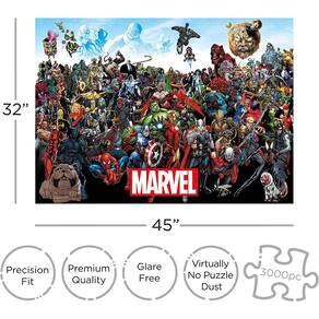 PRODUTO INTERNACIONAL. Desperte o herói que há em você com este quebra-cabeça épico de peças 3000 do Universo Marvel. Passe horas incríveis com seus personagens favoritos como Homem-Aranha, Hulk, Thor e Homem de Ferro, além de muitos outros
