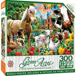 MasterPieces - Quebra-cabeça de 300 peças, formas grandes de aderência EZ, reunião de jardim, diversão para adultos, idosos, família, crianças, acabamento fosco, 46 x 61 cm - PEÇAS EXTRA GRANDES: Nossos quebra-cabeças EZ Grip apresentam peças grandes e mais grossas para facilitar a coleta e manipulação; cuidadosamente trabalhados com crianças pequenas e idosos em mente; finalmente, quebra-cabeças que toda a família pode desfrutar juntos - FORMAS ÚNICAS: O quebra-cabeça possui 300 peças em uma variedade de cortes, garantindo um desafio; peças grossas entrelaçadas seguram firmemente; um pôster vibrante e colorido está incluído para referência enquanto você o monta - Responsável pelo meio ambiente: este quebra-cabeça é feito de material 100% reciclado e tintas à base de soja não tóxicas; Masterpieces é uma empresa americana de quebra-cabeças e jogos - Desafio: Nossos quebra-cabeças são projetados para serem divertidos e mentalmente estimulantes; ajudam no relaxamento; aumentam as habilidades de resolução de problemas; ótima atividade social com a família e amigos - Entretenimento para todos: a coleção MasterPieces oferece a maneira perfeita de manter a diversão noturna do jogo; selecione entre quebra-cabeças para adultos, idosos e crianças; baralhos exclusivos de baralho, jogos de tabuleiro, dominó, kits de artesanato e muito mais