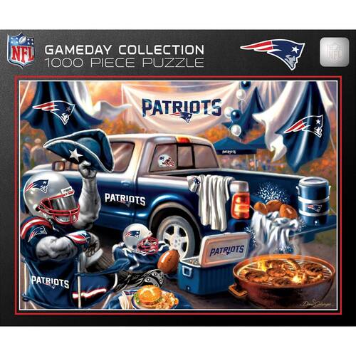 MasterPieces - Quebra-cabeça de 1000 peças, NFL New England Patriots, divertido para adultos e família, acabamento sem brilho, 49 cm x 68 cm - Licenciado oficialmente: nossos quebra-cabeças NFL são oficialmente licenciados pelas ligas em que seus times favoritos jogam; divertidos para dias de jogos e não autorização; o nível de dificuldade é apropriado para um fã adulto desfrutar; para crianças menores de 14 anos, esses quebra-cabeças são melhor feitos em família - FORMAS ÚNICAS: O quebra-cabeça possui 1.000 peças em uma variedade de cortes, garantindo um desafio; peças grossas interligadas seguram firmemente; acabamento fosco antirreflexo reduz o cansaço visual - Responsável pelo meio ambiente: nossos quebra-cabeças são feitos de material 100% reciclado e tintas à base de soja não tóxicas - Entretenimento para todos: a coleção MasterPieces oferece a maneira perfeita de manter a diversão noturna do jogo; selecione entre quebra-cabeças para adultos, idosos e crianças; baralhos exclusivos de baralho, jogos de tabuleiro, dominó, kits de artesanato e muito mais