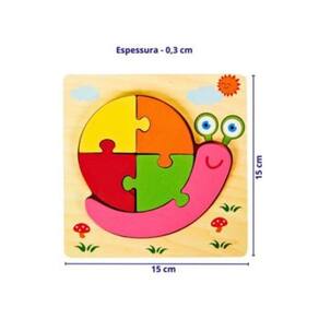O Mini Quebra-Cabeça Caracol é um brinquedo educativo que combina aprendizado, diversão e criatividade. Produzido em madeira, o tabuleiro ilustrado mede 15 x 15 x 0,3 cm. É composto por 6 peças, sendo 1 tabuleiro com 5 peças coloridas para encaixar, formando um lindo caracol. Desenvolvido especialmente para crianças a partir de 3 anos, este quebra-cabeça é perfeito para estimular a coordenação motora fina, a percepção visual, a atenção e a capacidade de resolução de problemas, tudo de forma lúdica e envolvente. O design ilustrado e colorido atrai os pequenos e torna o aprendizado ainda mais prazeroso, ajudando também no reconhecimento de formas e cores. Além disso, por ser compacto e leve, é ideal para levar em passeios ou viagens. Indicado para crianças a partir de 3 anos (conforme fabricante). Conteúdo da embalagem: 1 tabuleiro com 5 peças para encaixar Medidas do tabuleiro: 15cm x 15cm x 0,3cm (CxAxL) Composição: Madeira