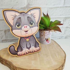 Quebra Cabeça Método Montessori Brincadeira com Aprendizado 9 Peças Gato Nível Fácil #Brincando de forma lúdica #Aprendizado infantil #Método Montessori Garantia: 90 Dias / Peso: 468g / Cor: Cinza / Ref: 110QBRKBCACAT Dimensões do quebra cabeça: 24,5cm (C) x 19,5cm (L) x 1,5cm (A) Dimensões da base externa: 25cm (C) x 20,5cm (L) Dimensões da maior peça: 8,5cm (C) x 7,5cm (L) x 1,5cm (A) Dimensões da menor peça: 7,5cm (C) x 7cm (L) x 1,5cm (A) Espessura: 5mm Estampa: Gato. Observação: Quebra cabeça com 9 peças. Conteúdo: - 01 Quebra cabeça; - 01 Base MDF. Limpeza e cuidados: - Não exponha sob luz direta do sol, pois este é prejudicial a longevidade do produto; - Lave com pano levemente umedecido com água, seguido de pano seco; - Não utilizar produtos químicos ou abrasivos na limpeza; - Não submergir em água. Detalhes do produto: - Acompanha uma base de MDF com 1 quebra cabeças de nove peças que pode ser usado como quadro decorativo. - Desenvolvidos em MDF com acabamento em melamina seladora (protege contra a umidade); - As estampas são impressas diretamente no MDF (sem adesivo). Materiais: - Melamina; - MDF. Este jogo de quebra cabeças, além de ser lindo, tem um super diferencial: é desenvolvido em MDF com acabamento em melamina seladora, super resistente contra umidade. Sua estampa remete um gatinho super fofo, que pode virar um quadro no quartinho das crianças ou até mesmo na brinquedoteca. Marca: Sulartes