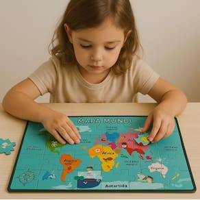 O Quebra-Cabeça Mundi Educativo Infantil é perfeito para crianças a partir de 3 anos. Produzido em madeira resistente, traz o mapa-múndi ilustrado de maneira divertida, com animais, monumentos e elementos culturais de cada continente. Com 35 peças de encaixe fácil, o brinquedo estimula o raciocínio lógico, a concentração, a percepção espacial e a coordenação motora fina. Ideal para aprendizagem ativa e para despertar o interesse pela geografia e diversidade do mundo. Produto durável, sustentável e inspirado na educação Montessori.