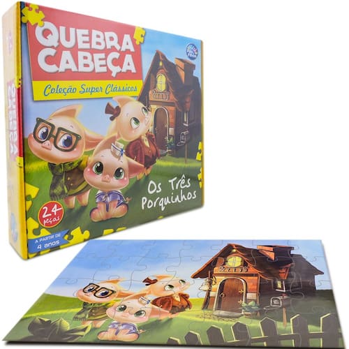 Quebra Cabeça Os 3 Porquinhos 24 Peças - Pais e Filhos