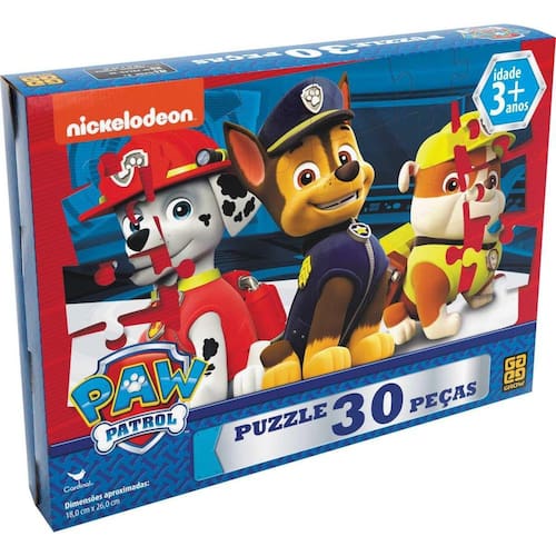 Características: - Título: Quebra-Cabeça Patrulha Canina 30 Peças Grow - Faixa Etária: A partir de 3 anos - Componentes: 1 quebra-cabeça de 30 peças - Tamanho da Imagem: 18,0 x 26,0 cm - Dimensões da embalagem: 24,8 x 18,5 x 4,0 cm - Alimentação: NA - Participantes: 1 ou mais - Garantia: 3 meses - Certificação: Inmetro CE-BRI/ICEPEX-N 01024-25 - NM300-2004 - OCP - Outras Informações: Não recomendável para menores de 3 anos, por conter partes pequenas. - Personagens: Patrulha Canina Ean: 7908010133516