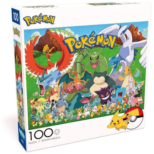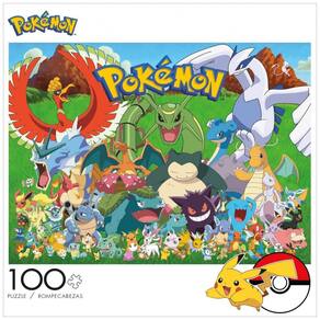 O quebra-cabeça Pokémon Fan Favorites da Buffalo Games é um puzzle de 100 peças com arte temática que reúne diversos Pokémon em uma única cena colorida. A ilustração final apresenta vários personagens em composição dinâmica, com cores vivas e detalhes pensados para fãs de diferentes idades.