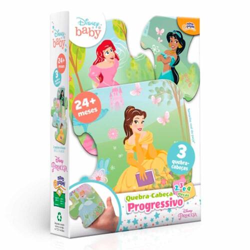 Quebra-Cabeça Progressivo - 2, 3 e 4 Peças - Disney Princesas - Toyster: As crianças vão se divertir com este incrível quebra cabeça progressivo das Princesas Disney da Toyster. Inspirado e com ilustrações das principais princesas dos contos de fadas. O quebra-cabeça progressivo de 2, 3 e 4 peças propõe três níveis crescentes de dificuldade para a criança. Brincando com a família e as amigas, a criança se diverte montando cada peça! Como brincar: Começando pelo mais fácil, a dificuldade aumenta a cada quebra-cabeça que a criança monta. As crianças vão se divertir com este quebra-cabeça progressivo! Detalhes: • Ideal para crianças a partir de 02 anos de idade • Peças grossas e resistentes • Adequado para crianças pequenas Informações: • Produto: Quebra-Cabeça Progressivo Princesas • Marca: Toyster • Coleção: Disney Baby • Linha: Disney-Princesa • Tipo: Quebra-Cabeça Progressivo Infantil • Categoria: Quebra-Cabeças e Puzzles • Subcategoria: Quebra-Cabeças Progressivos • Conteúdo: 09 peças ao total (03 quebra-cabeças de 2,3 e 4 peças) • Recomendação: para crianças a partir de 24 meses de idade Especificações: • Referência: 8070 • Código de Barras: 7896054080708 • Embalagem (C x A x L): 13.2 x 20.5 x 4.5 cm • Embalagem (Peso): 0.130 kg • Material / Composição: Papel e Papel cartão • Registro: 000 417/2022 • Certificado: Órgãos Autorizados - OCP´S (Organismos de Certificação de Produtos) Aviso: • As imagens são meramente ilustrativas • Os pesos, tamanhos e medidas são aproximados • As cores e estampas dos produtos podem ter variações • As informações são de responsabilidade do fabricante ou fornecedor