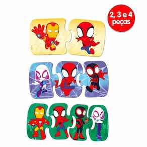 Quebra-Cabeça Progressivo - 2, 3 e 4 Peças - Spidey - Toyster: As crianças vão se divertir com este incrível quebra cabeça progressivo Spidey and His Amazing Friends da Toyster. Inspirado e com ilustrações dos personagens da animação da Marvel, Spidey e seus Incríveis Amigos. O quebra-cabeça progressivo de 2, 3 e 4 peças propõe três níveis crescentes de dificuldade para a criança. Brincando com a família e os amigos, a criança se diverte montando cada peça! Como brincar: Começando pelo mais fácil, a dificuldade aumenta a cada quebra-cabeça que a criança monta. As crianças vão se divertir com este quebra-cabeça progressivo! Detalhes: • Ideal para crianças a partir de 02 anos de idade • Peças grossas e resistentes • Adequado para crianças pequenas Informações: • Produto: Quebra-Cabeça Progressivo Spidey • Marca: Toyster • Coleção: Marvel • Linha: Spidey and His Amazing Friends • Tipo: Quebra-Cabeça Progressivo Infantil • Categoria: Quebra-Cabeças e Puzzles • Subcategoria: Quebra-Cabeças Progressivos • Conteúdo: 09 peças ao total (03 quebra-cabeças de 2,3 e 4 peças) • Recomendação: para crianças a partir de 24 meses de idade Especificações: • Referência: 8069 • Código de Barras: 7896054080692 • Embalagem (C x A x L): 13.2 x 20.5 x 4.5 cm • Embalagem (Peso): 0.130 kg • Material / Composição: Papel e Papel cartão • Registro: 000 417/2022 • Certificado: Órgãos Autorizados - OCP´S (Organismos de Certificação de Produtos) Aviso: • As imagens são meramente ilustrativas • Os pesos, tamanhos e medidas são aproximados • As cores e estampas dos produtos podem ter variações • As informações são de responsabilidade do fabricante ou fornecedor