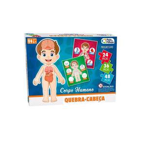 Quebra-Cabeça Progressivo - 24, 36 e 48 Peças – Corpo Humano - Pais e Filhos: O quebra-cabeça para você conhecer um pouco mais sobre a anatomia humana! Ele traz três imagens do corpo humano ilustrando os órgãos como fígado, pulmão, estômago, cérebro e intestino, suas ligações, como coração, artérias e veias, com destaque especial para crânio, costelas, mandíbula, fêmur e bacia. A imagem deste quebra-cabeça é meramente ilustrativa. Mais que um passatempo divertido, os quebra-cabeças desenvolvem o raciocínio, relaxam e se transformam num autêntico hobby. Detalhes: • As peças do verso são diferentes para facilitar a separação dos modelos • Inicie a montagem pelo quebra-cabeça de 24 peças, a fim de que a montagem das ilustrações de 36 e 48 peças ofereça um desafio progressivo e atraente • Começando pelo mais fácil, a dificuldade aumenta a cada quebra-cabeça que a criança monta • As crianças vão se divertir com este quebra-cabeça progressivo! Informações: • Produto: Quebra-Cabeça Progressivo Corpo Humano • Marca: Pais e Filhos • Tipo: Quebra-Cabeça Progressivo Infantil • Categoria: Quebra-Cabeças e Puzzles • Subcategoria: Quebra-Cabeças Progressivos • Conteúdo: 03 quebra-cabeças com 24, 36 e 48 peças • Recomendação: para crianças a partir de 4 anos de idade Especificações: • Modelo: Puzzle Progressivo Corpo Humano • Referência: 21591 • Código de Barras: 7896647021590 • Embalagem (C x A x L): 27 x 20 x 5,5 cm • Embalagem (Peso): 0,203 kg • Dimensões: 17cm x 20 cm • Material / Composição: Papel e Papel Cartão • Registro: 003755/2019 - CE-BRI/ICEPEX-N 01264-25 • Certificado: Órgãos Autorizados - OCP´S (Organismos de Certificação de Produtos) Aviso: • As imagens são meramente ilustrativas • Os pesos, tamanhos e medidas são aproximados • As cores e estampas dos produtos podem ter variações • As informações são de responsabilidade do fabricante ou fornecedor