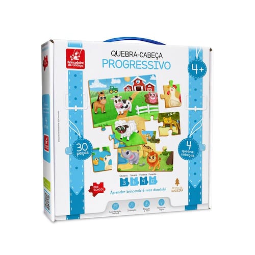O Quebra-cabeça Progressivo Animais, da Brincadeira de Criança, é fabricado com madeira de qualidade, garantindo durabilidade e resistência durante o uso.