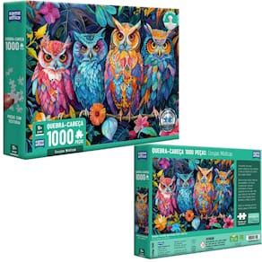 Descrição do produto : " Quebra-cabeça de 1000 peças das fantásticas Corujas Místicas, cheio de cores e detalhes! Este quebra-cabeça vem com padrão internacional de qualidade e encaixe suave que pode ser sentido em cada peça! Imagem montada (aproximadamente) 61,9 x 44,9cm : "
