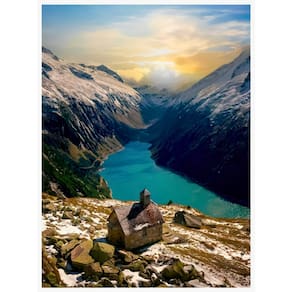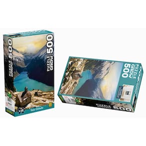 Poucos lugares no mundo têm a sorte de reunir numa mesma paisagem elementos simples e grandiosos que se completam perfeitamente. É isso que vemos na imagem que retrata este enorme vale nos Alpes, com uma construção ímpar, que se acomoda de forma plácida e isolada na magnitude das montanhas. A neve no topo parece aos poucos de deslocar para baixo, como se quisesse encontrar as águas que desfilam lentamente no centro de toda essa natureza. Sinta-se privilegiado e monte cada uma das 500 peças deste gélido local banhado de paz e beleza!