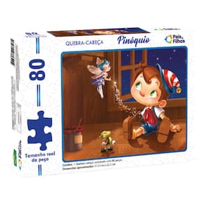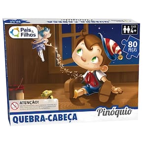 O Quebra-Cabeça Pinóquio da Pais & Filhos é uma atividade educativa ideal para estimular o raciocínio lógico, a concentração e a coordenação motora de crianças a partir de 4 anos. Com 80 peças cartonadas, proporciona um desafio adequado à faixa etária, promovendo o desenvolvimento cognitivo de forma lúdica.