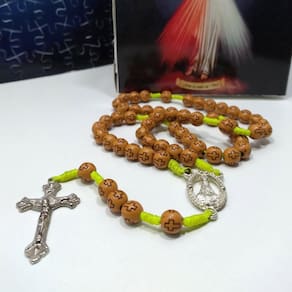 Um Terço super especial faz parte deste kit sensacional, este terço é feito por uma casa de acolhida e uma parte da venda destes quebra-cabeças juntamente com os terços serão doados a esta casa para manutenção e recuperação de jovens.