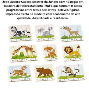 Quebra-cabeça Soletrar Bichinhos 42 Peças Em Madeira -junges DESCRIÇÃO DO PRODUTO