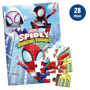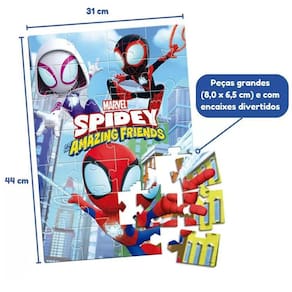 As crianças vão amar montar esse lindo quebra-cabeça inspirado nos heróes. Ele conta com 28 peças que juntas formam uma linda imagem . Mais que um passatempo, auxilia no desenvolvimento da coordenação motora, sendo um jogo fundamental na formação educacional e cognitiva dos pequenos. Divirta-se montando este incrível quebra-cabeça do Spidey e seus amigos!