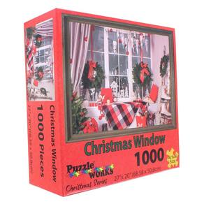 - BELA ARTE: O quebra-cabeça concluído mede 27 x 20 polegadas e retrata uma cena festiva com uma janela decorada para o Natal. Parte da série de Natal Puzzle Works.