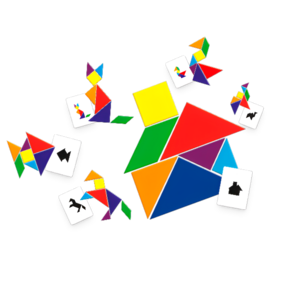 Conteúdo da Embalagem: - 01 tangram (07 peças) - 41 cartas com figuras