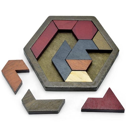 As peças de madeira são seguras para crianças. A superfície é lisa e os cantos são redondos. Existem várias soluções. Ótimo para exercícios cerebrais. Diversão de fazer com a família.