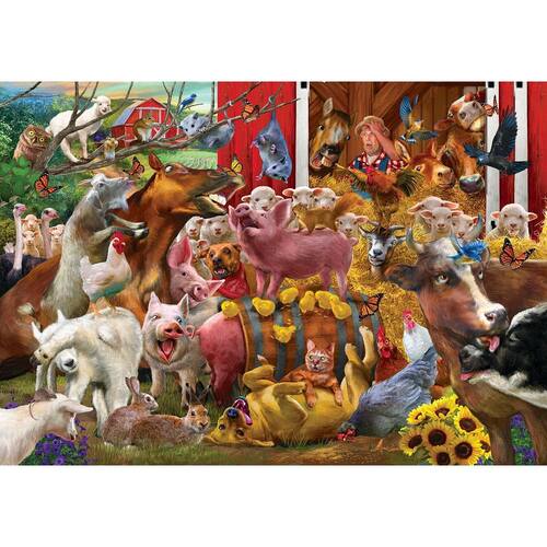 - Design divertido: aproveite um pouco de diversão na fazenda com este quebra-cabeça de 1.000 peças. O design cômico apresenta uma cena caótica de celeiro de animais de fazenda soltos. Monte um grupo estridente de vacas, galinhas, porcos e outros animais.