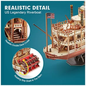 Com o kit de modelo 3D da CubicFun, mergulhe na era dourada dos navios a vapor do Mississippi com o autêntico e detalhado navio de dois andares. Este conjunto inclui 142 peças que se encaixam perfeitamente, sem a necessidade de cola ou ferramentas, proporcionando uma montagem intuitiva e precisa. As instruções detalhadas garantem que você possa construir o modelo com paciência e cuidado, esperando uma conclusão em cerca de 46 horas. Destacando-se com um eixo giratório na popa, este modelo não apenas captura a essência histórica, mas também adiciona um toque dramático e realista à sua montagem. O quebra-cabeça 3D oferece diversão e desafios, sendo um presente ideal para amigos e familiares interessados em modelagem e história naval. A CubicFun, conhecida por sua qualidade e confiabilidade, reafirma seu compromisso com a satisfação do cliente, oferecendo uma política de reembolso que garante uma experiência satisfatória para todos os entusiastas de modelos e quebra-cabeças.