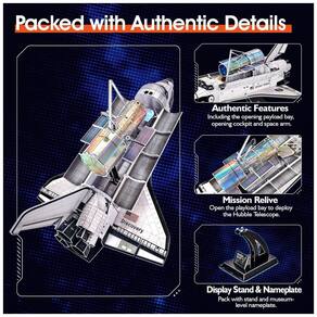 Explore o universo com o conjunto de construção do ônibus espacial da NASA, que inclui detalhes autênticos do Discovery, a nave que implantou o Telescópio Espacial Hubble. Este modelo realista vem com um suporte de exibição e é uma peça central atraente para a casa ou o escritório. É o presente perfeito para adultos e crianças interessados na exploração espacial e na história da NASA. As instruções ilustradas em 3D e os materiais seguros e duráveis garantem uma montagem fácil e envolvente, tornando o um item obrigatório para qualquer colecionador ou entusiasta do espaço. Tamanho de construção é 49 cm x 30 cm x 33 cm.