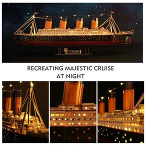 Recriando majestoso cruzeiro à noite com uma escala de 1305. Mantenha o menory flutuando para sempre. Efeito de iluminação com 85 lâmpadas LED localizadas sob o convés. 2 pilhas AA necessárias não incluídas. Experiência de montagem de quebra cabeça 3D sem cola todas as peças se encaixam com precisão. Fácil de montar, sem necessidade de cola ou ferramentas. Isso lhe dará uma grande sensação de realização, uma vez concluído. Presentes de aniversário para mulheres e homens e decoração de mesa legal o navio de quebra cabeças 3d realista é o excelente presente para qualquer ocasião. Divirta se na montagem com amigos e familiares. Decoração legal para casa e escritório para iluminar seu quarto e surpreender a todos. Tamanho da caixa 43 x 30 x . Tamanho maior com design detalhado 87 x 30 x . Este kit de modelo de embarcação de quebra cabeça 3d vem com placas de espuma pré cortadas, instruções e acessórios de led. Cerca de 4 horas para montar. Ser paciente. Recomenda se a partir de 14 anos Marca: Não Informado