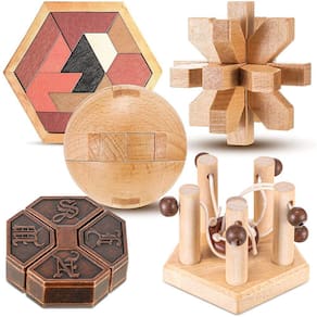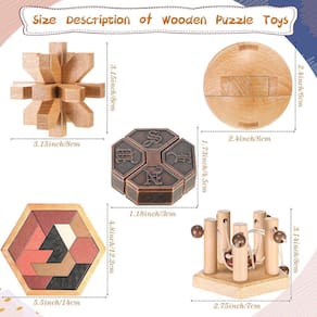 - O que você ganha: o pacote vem com um conjunto de brinquedos de madeira e metal, incluindo quebra-cabeça hexagonal de madeira, quebra-cabeça de bola mágica de madeira, quebra-cabeça de ameixa de madeira e assim por diante, que podem desafiar seu cérebro e paciência e ajudar a desenvolver inteligência e imaginação