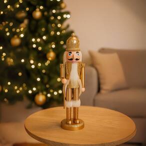 Adicione tradição e elegância à sua decoração natalina com o Quebra-Nozes Decorativo Dourado Luxo com Bastão Estrela, uma peça clássica que traz charme e sofisticação para qualquer ambiente. Com 28cm de altura, este enfeite é perfeito para complementar aparadores, mesas, prateleiras, guirlandas ou a base da árvore de Natal.